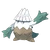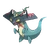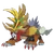 - 歩くよりも 泳ぐほうが 得意。お腹の 渦巻き模様は 透けて 見える 内臓の 一部だ。